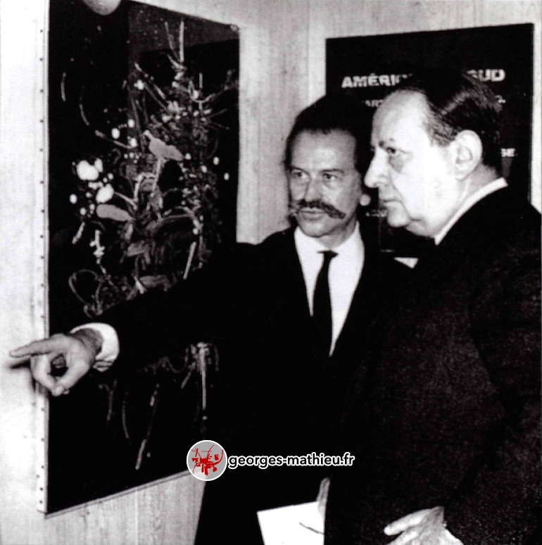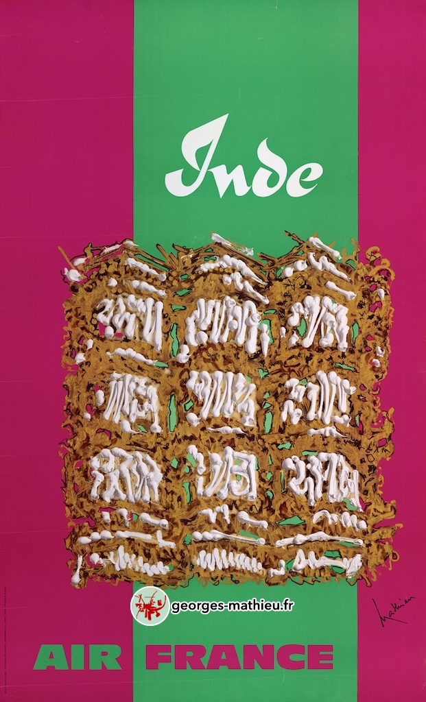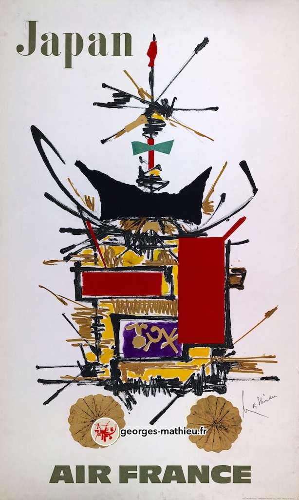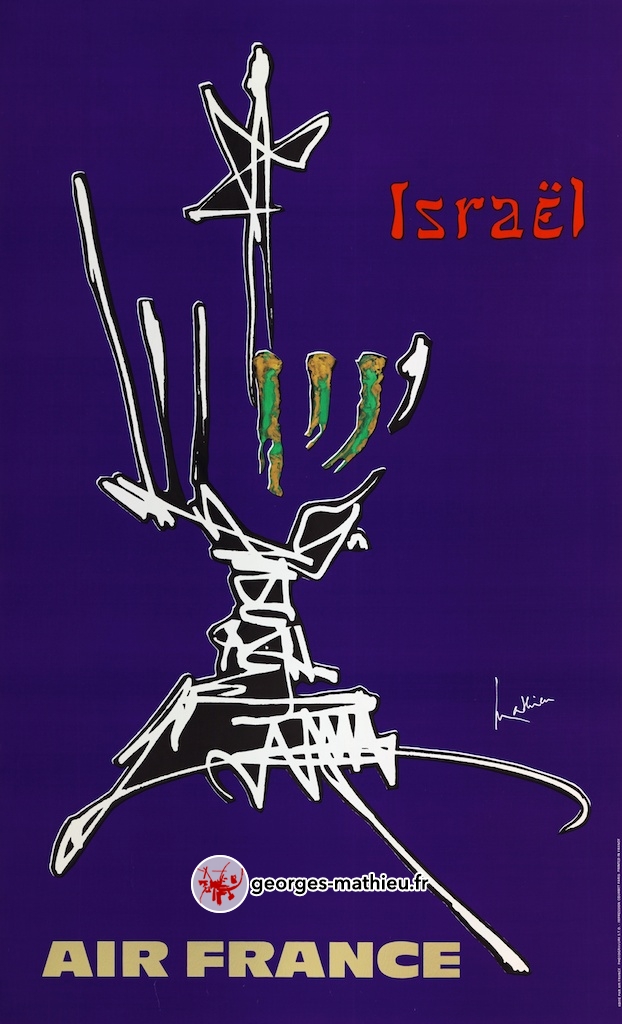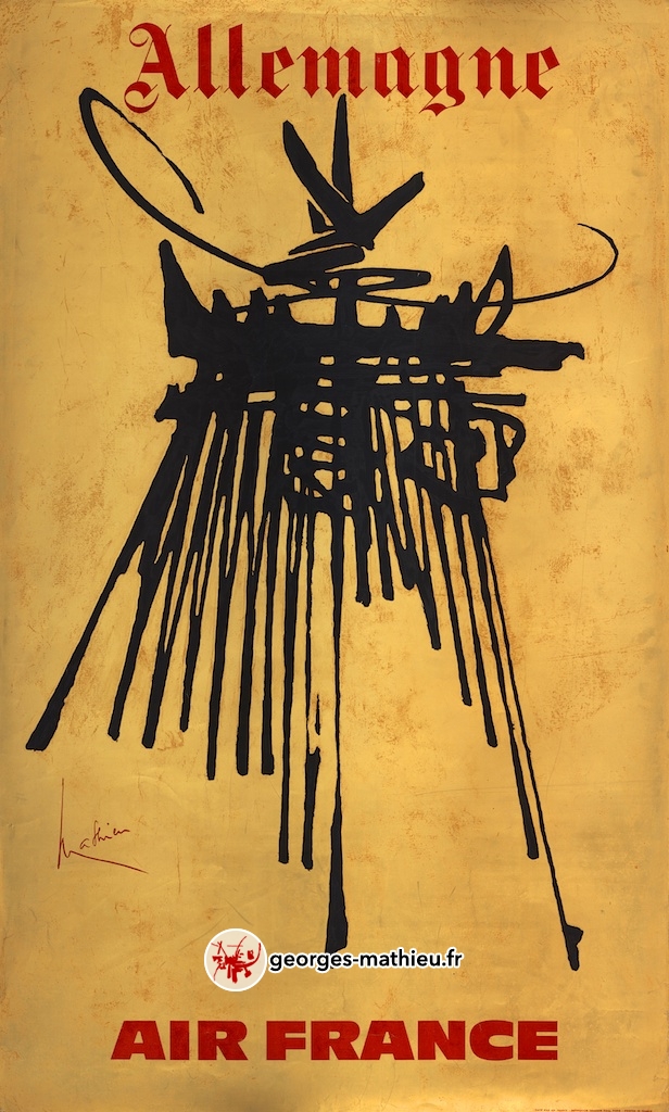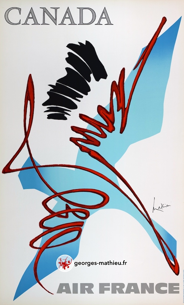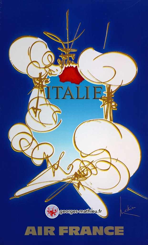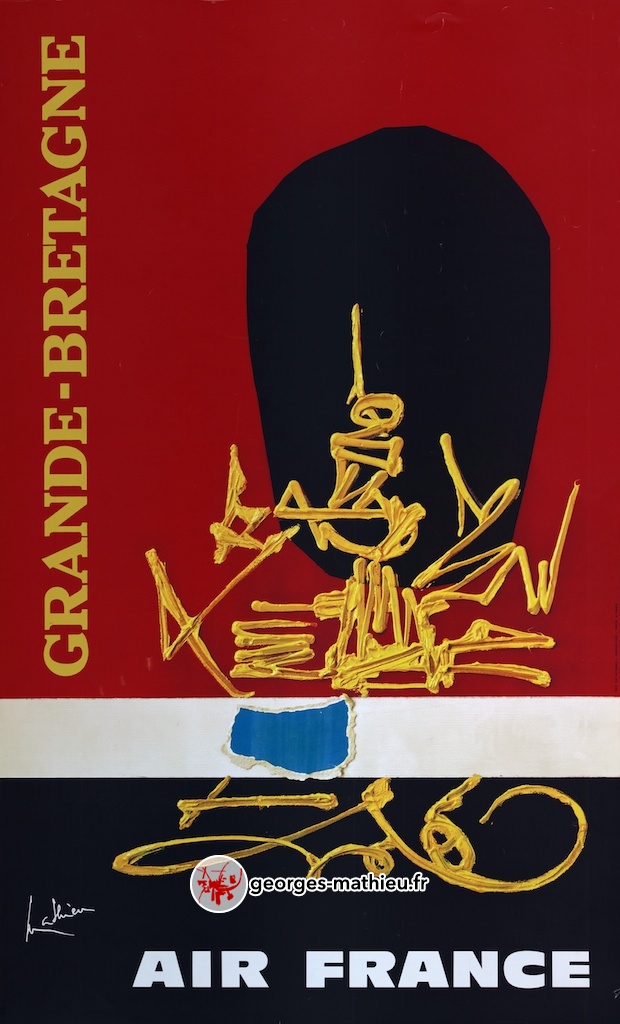 Commencée un an plus tôt, Mathieu acheva en 1967 la réalisation d’une série d’affiches pour Air France, dont l’initiative revient à Pierre Sautet, sous-directeur commercial d’Air France. Cette rencontre unique entre art et publicité aboutit à la présentation des affiches le 26 octobre 1967 au Musée d’Art Moderne de la Ville de Paris. Elles connurent un énorme succès : il y eut des dizaines d’expositions organisées en France puis dans le monde, et plus d’un million d’affiches vendues.